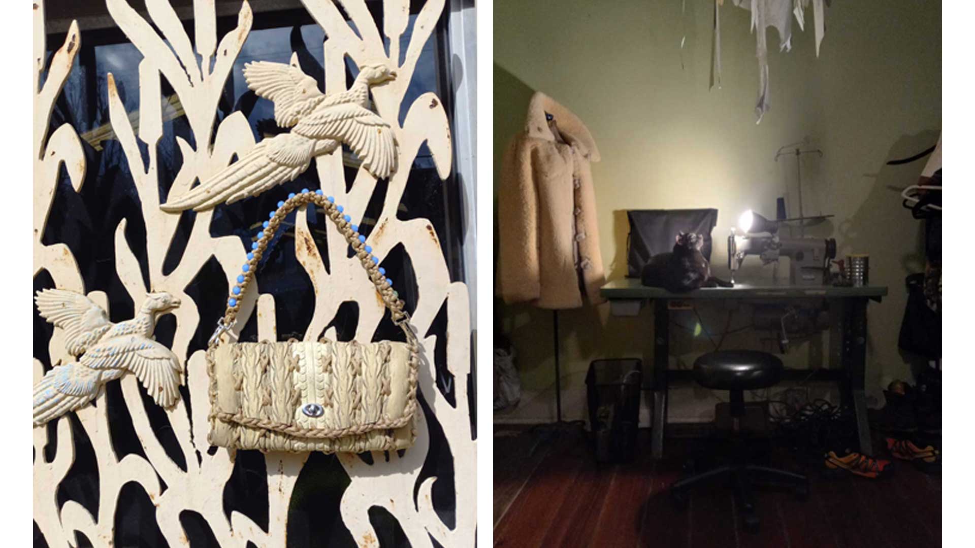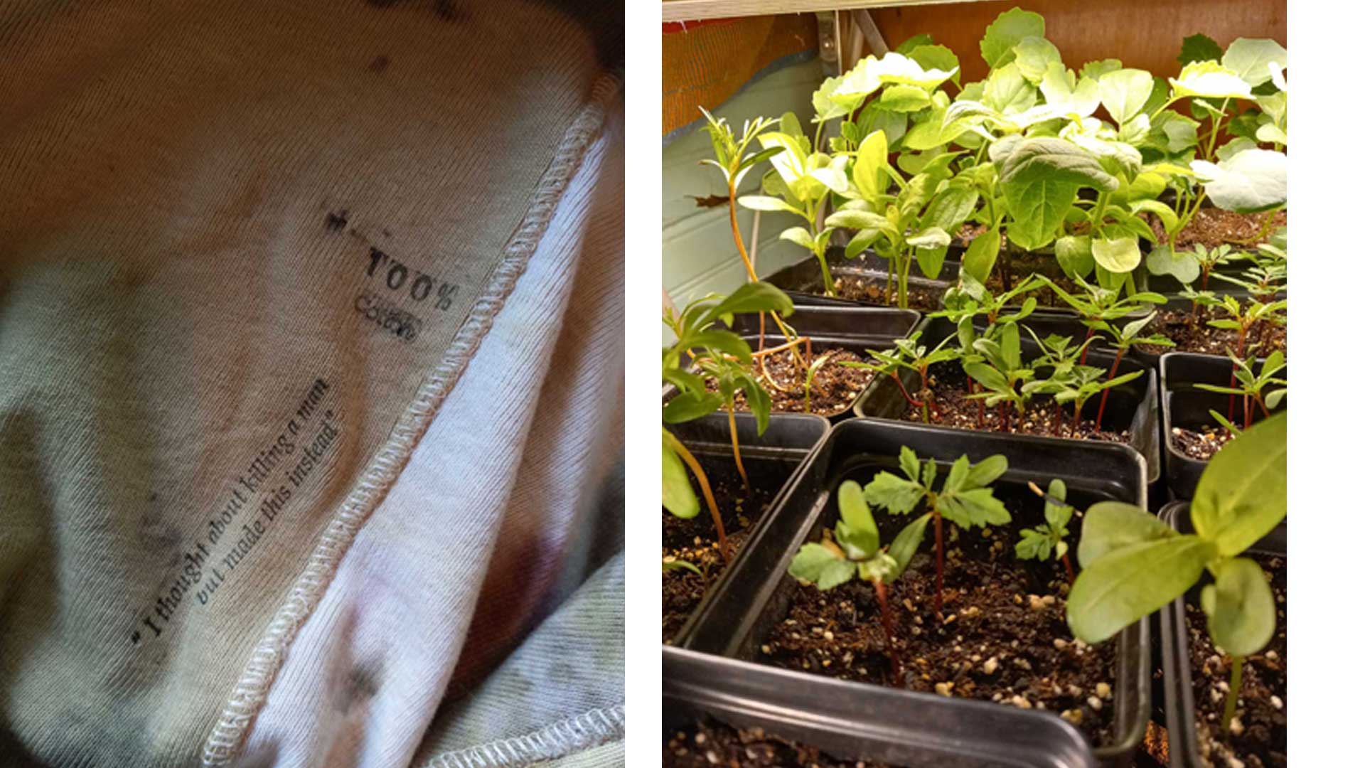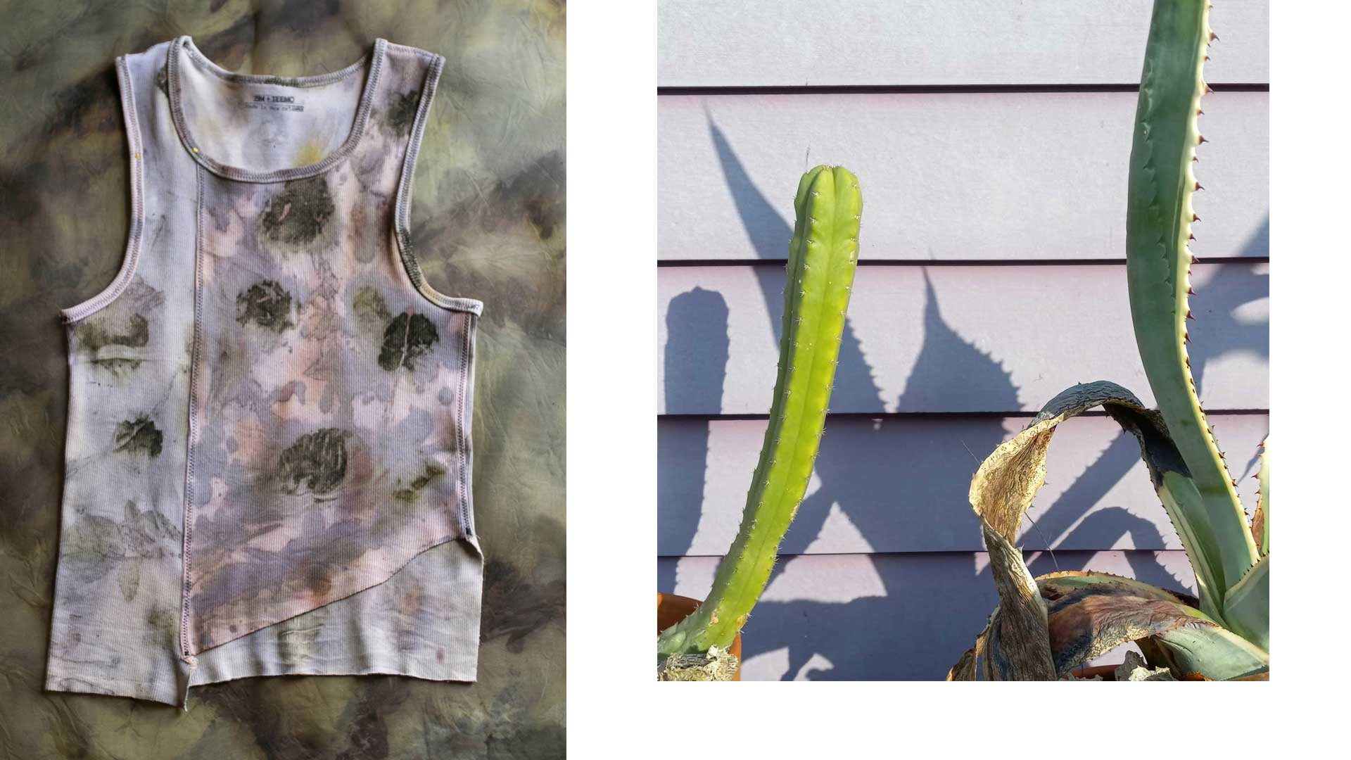 Without 3 am walks there wouldn't be eco printed dresses. Without the neighbor throwing away used bicycle tires there would have been the original Maouse Mini. Rummaging through the bargain center, the damp and overcrowded chaotically organized warehouse is akin to digging for treasure. The weeds and invasive species growing out from under houses, from cracks in the concrete create impressions on fabric that resemble the spine of a lizard, the kind that occasionally get trapped in the house and need rescuing from two formerly feral street cats.